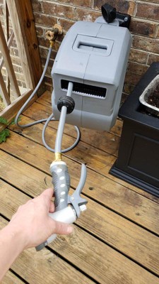 - Watering your lawn and garden is easier than ever with this mounted water hose reel pre-installed with a 100ft hose
