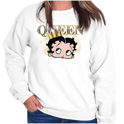 Retro Betty Boop Cartoon Queen Vibes Women Crewneck Sweatshirt Licensed Brisco Brands White x