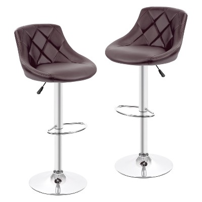 Retro Brown Bar Stools Set of 2, 26.5" Counter Height with Armrests & Footrest, 300Lbs Capacity, Upholstered Thick Cushion Bar Chairs for Kitchen/Bar