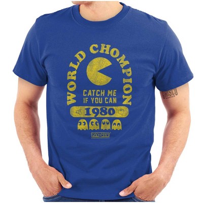 Retro Funny PACMAN World Chompion Graphic T Shirt Men or Women Licensed Brisco Brands Royal m