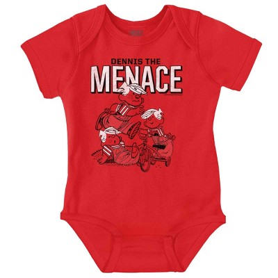 Retro Old School Dennis The Menace Baby Romper Boys or Girls Licensed Brisco Brands Red 12m