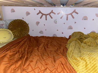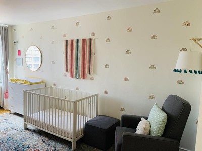 I really love the way these rainbows look in our playroom! They don’t stick super well on their own, which makes them very easy to reposition but isn’t the best for a room with little toddler hands. I used my blow drier to heat them up a bit, then rolled a ball over them to help them better adhere to the wall. Now they’re stuck on much better so my 2 year old can’t peel them off as easily, but they can still be removed without damaging my wall with a little extra effort.