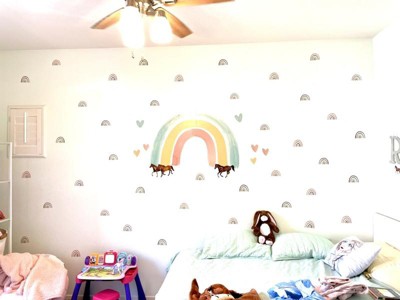 Bring the beautiful array of colors to your space with a set of Retro Rainbow Peel and Stick Wall Decals by RoomMates. This wall sticker set is a fun and creative way to transform any room in seconds. To apply, simply peel and stick decals to any smooth, flat surface. Remove, reposition and reuse as often as needed. Created with high quality vinyl that s made to last, walls stay completely safe, and sticky residue is never left behind. It s fast, fun and affordable wall decor at it s best.