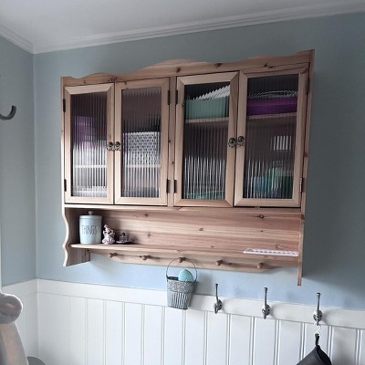 Cabinet with Open Door: A storage hero with four doors and solid wood+glass build! Lower hooks and an open rack boost flexibility. Removable shelves fit odd-sized items. Installs easily in kitchens/bathrooms. Plus, reliable customer support has your back. Both blend style, function, and sturdiness—perfect for tidy spaces!