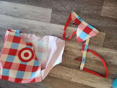 - Reusable shopping tote from Target with seasonal plaid pattern
