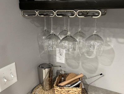 - STEMWARE ORGANIZER: 11-inch quad stemware under cabinet holder for your favorite glasses