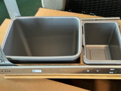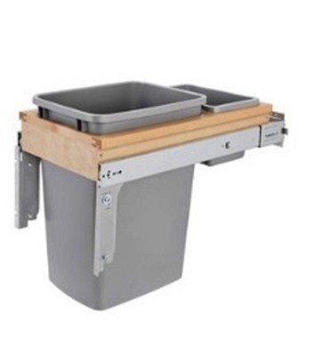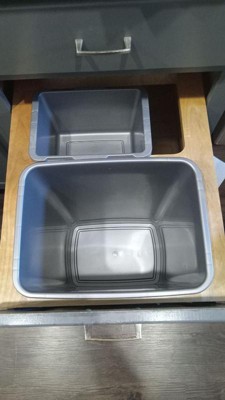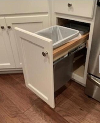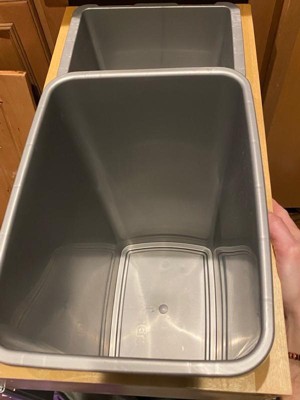 trash cans| Part Number | Width | Depth | Height | Bin Dimensions without frame & hardware (WxDxH) | Cabinet Fit | Minimum Cabinet Opening Width | Number of Bins | Quart Size |