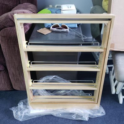 [This review was collected as part of a promotion.] I have been wanting a better place to store my seasonings and spices in my kitchen. I no longer have to climb up on the countertop to dig through the cabinets. This Rev-A-Shelf 432-BFBBSC-3C 3" Cabinet Base Filler Pull-Out Organizer Spice Rack fit right in a narrow cabinet that was a pain to access most times. Now I just pull out the rack and quickly grab what I need. It's a smooth glide rack for easy storage.