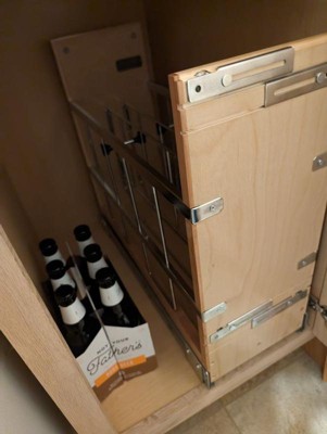 No more bending down or rifling through stacks of pots and pans in your cabinets, because with the Rev-A-Shelf Kitchen Pull Out Tray Cabinet Organizer, storing your baking sheets, cookie sheets, foil, wrap, and more has never been so simple. This undercabinet organizer features 2 compartments for storing baking sheets and platters, plus the removable center rack dividers allow you to store larger platters and bakeware if you want. When you want to access your bakeware, simply slide the organizer out and back in. The full-extension BLUMOTION slides feature a soft-close and can support up to 110 pounds. Door mounting is a breeze with Rev-A-Shelf's patented door mounting brackets that provide up to 5 inches of flexibility for trouble-free installation on any door style. This organizer will work for either full height under cabinets or cabinets with an above drawer.