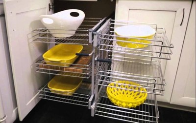 - MAXIMIZE YOUR SPACE: Maximize space and efficiency in either a left or right blind corner cabinet in your kitchen. Slide out design allows for easier access to everyday kitchen accessories like mixing bowls, pots, and serving bowls from 45-inch blind corner cabinets with a 15-inch opening