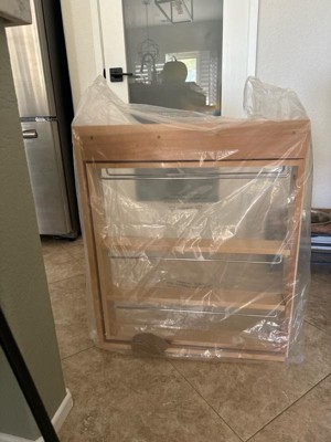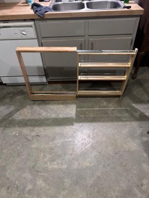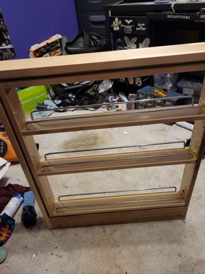 [This review was collected as part of a promotion.] Whoever came up with this idea is a genius. I can finally make use of the tiny cupboard in my kitchen! It used to be somewhere i just tossed empty shopping bags but now is organized and i feel like there'sso much more space! High quality wood and smooth hardware makes this glide effortlessly