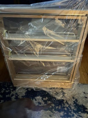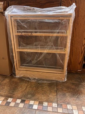[This review was collected as part of a promotion.] This is a massive storage shelf… 27x24 inches this heavy three rack shelf came prepackaged and ready to hang and store all of your spice and kitchen needs. Its light colored wood is paired with metal rungs and can easily be hung within minutes. Unfortunately ours arrived damaged so we were unable to hang it, possibly because of its weight but it would be a very nice spice rack otherwise. Will consume a very large area so measure wisely before purchasing.