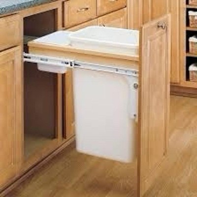 Including all the hardware you need, installing this under-the-sink pull-out trash can will be a breeze. These waste containers are designed for absolute sturdiness with front and rear adjustable mounting, pre-installed door mount brackets, and full-extension 150-pound rated ball-bearing slides for total stability.