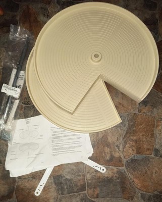 - MAXIMIZE YOUR KITCHEN SPACE: Maximize space with the 2-shelf, pie-shaped Lazy Susan for your kitchen cabinets; Includes (2) shelf almond pie-shaped polymer lazy susan set, mounting hardware, and telescoping shaft
