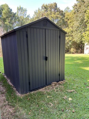 [This review was collected as part of a promotion.] "I recently upgraded my outdoor storage with the Keter Darwin 6 x 8 Foot Outdoor Storage Shed, and it's been a game-changer. The eco-friendly polypropylene resin construction ensures it stands up to the elements, remaining weather-resistant without rust, rot, or decay. The side window and skylight flood the interior with natural light, making it easy to locate items. The built-in vents keep the air fresh while protecting against mildew and dampness. Assembly is a breeze thanks to the tongue and groove construction, and no special tools are required. The option to add shelves for extra organization is a plus (shelves not included). The heavy-duty floor panels provide a solid foundation, ensuring durability in any weather. If you're in need of ample, durable storage for your garden accessories and tools, the Keter Darwin Outdoor Storage Shed is a reliable investment.