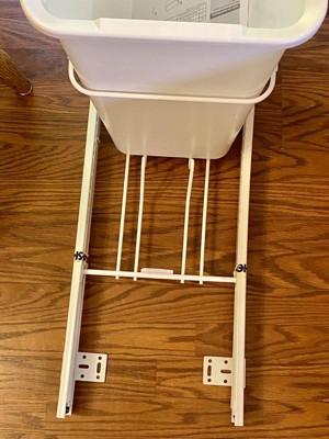 [This review was collected as part of a promotion.] I really do like this garbage pail, it works great for what it's intended for. I needed something to help my dogs from getting at the trash and pulling it out of the cabinet. The frame is a little flimsy for my taste. I would have liked to see a sturdier frame. I would also have liked a larger trash can. Otherwise easy to install and glides smoothly.