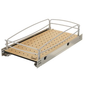 Offering multiple sizes, this kitchen organizer offers plenty of strong storage space to store a variety of kitchen accessories, from cookware, baking goods, pantry items, etc. The shelves are made of durable composite material and have a pegboard for use with optional accessories. Plus, the Soft-Close feature ensures that the drawers will close smoothly and quietly. If you need even more space, add this single-tier drawer to our 2-tier version to create a truly custom 3-tier solution. This pull-out base organizer is designed for a 15-inch cabinet with an 11.5-inch to 15-inch opening width.