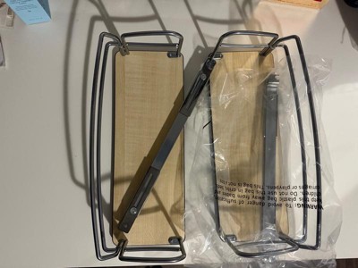 [This review was collected as part of a promotion.] This storage organizer comes with 2 shelves and mounts on cabinet doors. The wood is a nice light color and seems high quality. Black finished edges. It has a clean modern look overall. They didn’t come with instructions but it was pretty easy to figure out how the mounting hardware attached.