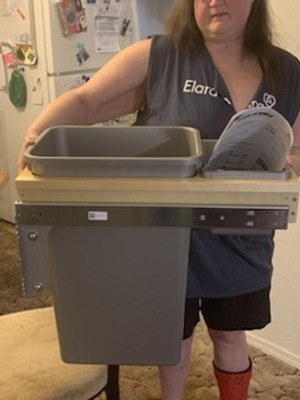 [This review was collected as part of a promotion.] We love this rev-a-shelf. We have installed it in our kitchen, right next to the sink. It rolls out smoothly, was easy to install, and works perfectly as an in-cabinet hide away compost bin for kitchen scraps