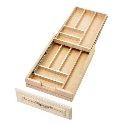 Rev-A-Shelf Trim-to-Fit Silverware Drawer Organizer For Kitchen Utensil Cutlery Cabinet Storage, Natural Maple Wood 9 Compartment Tray Insert, 4WCT-3