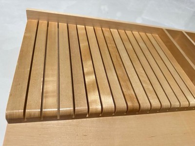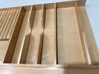 [This review was collected as part of a promotion.] This solid oak utensil divider is a game changer for kitchen organization. Say goodbye to drawer chaos and hello to a haven of calm! Crafted from sturdy smooth grained wood it effortlessly accommodates spatulas, whisks, tongs, and all your cooking essentials big or small. Its impressive build quality feels like an heirloom piece destined to last for generations and while it might be slightly larger than expected the convenient size is easily adjustable to fit your drawer perfectly. Don't let your utensil clutter cramp your cooking style transform your drawers into organized masterpieces with this beautiful and functional divider. Order yours today and experienced joy of a tidy kitchen.