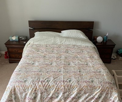This comforter set does not disappoint!! It is lightweight, yet very cozy. The various colors of green/pink/yellow on the floral side can easily go from Spring-Fall!! i also like the reversible option of green stripes. The side ties on the pillow shams add a nice touch!