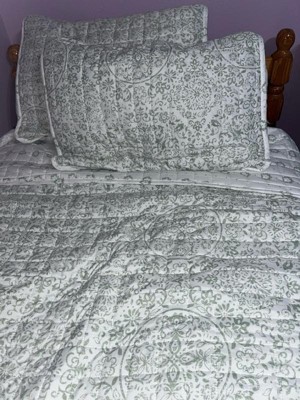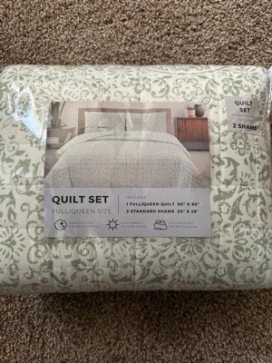 [This review was collected as part of a promotion.] I like the minimalist greenery design. I love that it’s a full queen with 2 shams. It’s a bit ‘light’ for me to call it a quilt as it’s definitely not a heavy fabric or weighted. Seems cool enough for year round.