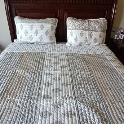[This review was collected as part of a promotion.] The Hermine Striped Microfiber Quilt Set in queen size is a stylish and comfortable addition to any bedroom. The microfiber material is soft and lightweight, ideal for year-round use. Its modern striped design adds a touch of elegance and easily complements various decor styles. The set includes a quilt and matching pillow shams, providing a cohesive look. Additionally, it is easy to care for and holds up well after multiple washes. Overall, a great value for its quality and design.