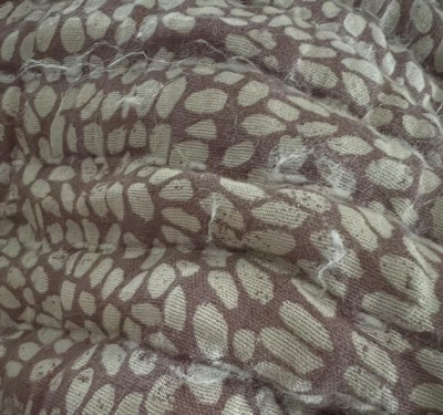 • A: The quilt has a 100% cotton shell with a 100% polyester fill.