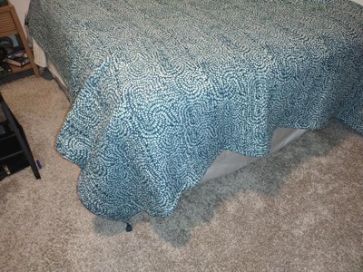I absolutely love this bedspread! It’s not too thick, so it’s perfect for summer. It is very soft and cozy. The pattern is beautiful with dark green and light blue. However, it keeps getting snags in it, and that’s the only thing I’m disappointed about.