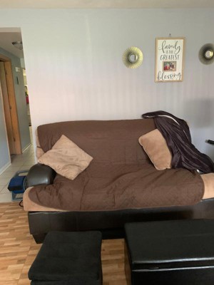 [This review was collected as part of a promotion.] The Zenna Home 3-Piece Reversible Sofa Quilted Furniture Cover in Chocolate and Brownstone was a bit small for my sofa. It is basically a square quilt with an elastic piece over the back to keep it on. You then just crease and tuck into your sofa crevices for fit. The fabric is a decent neutral color, both sides, with a nice soft feel. The arm covers just sit over the front half of the arms, with elastic in the very front to help keep in place. Again, it was too small for my sofa. However, I am excited to try it in the back seat of our Ram truck when taking our 2 huskies on road trips. It should work nicely!