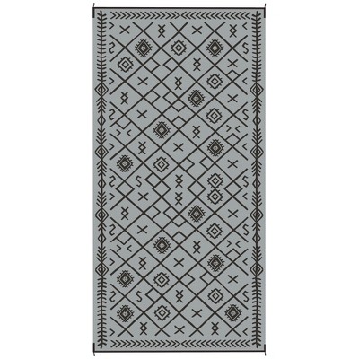 Reversible Outdoor Rug, Waterproof Plastic Straw with Carry Bag, Blue & White Rhombus Border