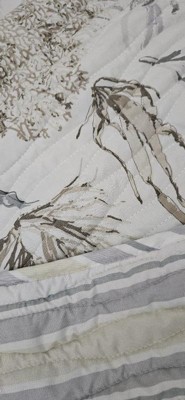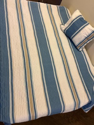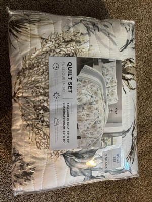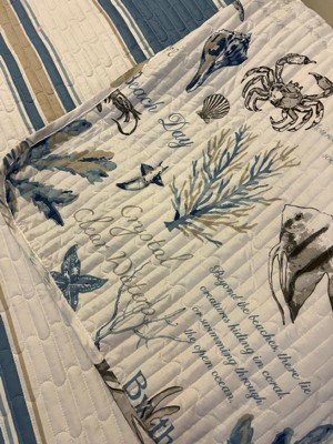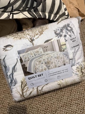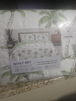 [This review was collected as part of a promotion.] When I first opened the package, the quilt felt a little stiff, but the bright, cheerful colors immediately stood out. The design is super cute, kind of a “By the Seaside” theme that would look great in a vacation home or for summer use. The fabric is polyester, so while it looks like cotton, it doesn’t have that super soft cotton feel at first, instead, it has a slightly plasticky texture. That said, after washing and using it a bit, it does soften up and becomes much more comfortable and flexible. My bed is slightly smaller than a queen but bigger than a full and this quilt fits perfectly. The pillowcases (it comes with two) fit well on standard pillows. It’s warm and cozy to sleep under, but definitely something to skip on hotter nights, it can get a little too warm. Stitching and overall quality seem solid, and for the price, I think it’s a great buy. I’d totally recommend it if you’re going for a light, breezy look for summer.
