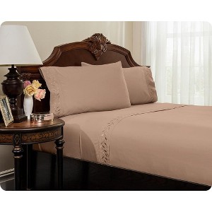 The embroidered border on the flat sheet & pillow cases, gives this set a nice finishing touch. 100% microfiber polyester. Machine washable and dryable.