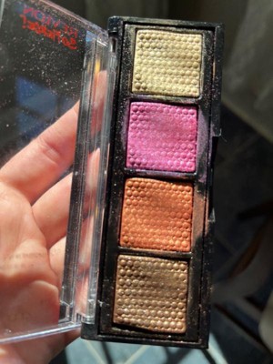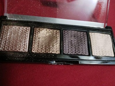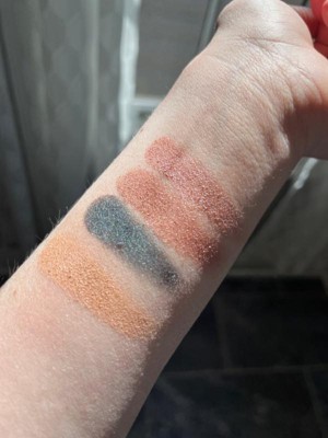 So the variety of texture in this little quad (a satin, two metallics, and a translucent duochrome) is impressive for an old school drugstore brand. The pigmentation is great. Fallout is pretty ordinary amount - if it bothers you use a sticky primer (I don't.) Blends really well, though the dark green is a bit finicky.