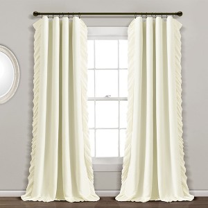 [This review was collected as part of a promotion.] If you are looking for curtains that are long and elegant, this is the one for you! I ordered these for the simple fact that they dragged the floor. I LOVE THAT! They look elegant and they aren't pricey like the competitors. Well worth the money. The material on these is great! They are just perfectly made that makes them not see through but just enough light comes through. They are well made so that they don't wrinkle once relaxed. If I didn’t know any better, I would have thought these were 500 thread count sheets. Wish they came in a linen material! That’s the only con! Pros: the ruffles are not overly done so they are perfect for a little girl's room or an adult room! If you order the white ones, you are really getting PURE white curtains, so they will pop off any wall color except white walls of course lol! If I had to think about what these curtains remind me off.... they remind me either of a beach front home or a spa kind of feeling! Love the look of these curtains... they feel a little bit cheaper than I expected and one side of where the curtain rod placement is, the inside seem was coming apart nothing needle, and thread couldn’t repair... but still for the money of these curtains I did expect better quality. As for the look, I am VERY impressed and love it. Favorite curtains EVER!!! Looks so beautiful with my ruffle bedding set from Lush Decor. They are so beautiful and look so luxurious. I don’t use them to darken our room, definitely there for the looks. And I 100% love them! I added sheer panels in between and think it looks great with the ruffle panels on the outside. These panels are great for a shabby chic look. The bottom corners curve and draw upwards, so allow this in the length. Hold up your rod up with curtains on it first and measure for desired break. If they puddle on the floor, it will hide that. The ruffles are very relaxed and not full or uniform but cute! The fabric is easy to iron and is very soft. They are very beautiful and made with good quality, especially for the price! I love how soft they are. They are on the thicker side which makes them look more expensive! Love them!