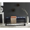 Enhance your living space with the Reynolds Bench in navy and black. With a sleek design, this bench seamlessly blends into any decor while providing functional seating. Crafted with a linen cushion and a sturdy metal frame, the Reynolds Bench offers both visual appeal and reliable support. Its versatile color palette of navy and black adds a touch of modern elegance to your home.
