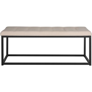 Introducing the Reynolds Bench in beige and black�a beautiful blend of style and function. This piece adds a touch of elegance to any space with its sleek design and clean lines. Crafted with a linen seat and sturdy metal frame, it offers comfort and durability. The neutral beige linen complements the bold black metal, creating a sophisticated look that fits seamlessly into various decor styles. Perfect for your living room, hallway, or at the foot of your bed, the Reynolds Bench provides versatile seating without compromising on style. Its minimalist design ensures it enhances rather than overwhelms your interior setting. Elevate your home with this elegant bench that combines beauty and utility in perfect harmony.