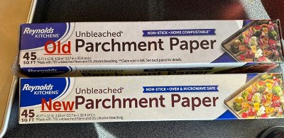 - Unbleached Reynolds Parchment Paper— Contains one 45 square foot roll of Reynolds Kitchens Unbleached Parchment Paper