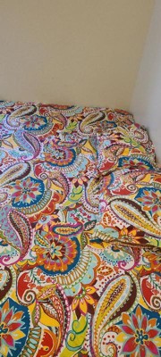 The Levtex Home Rhapsody Duvet Set adds vibrant bohemian energy to your bedroom with a bold paisley and floral design in rich reds, turquoise, gold, and green. Reversing to a coordinating orange geometric print, it offers two looks in one. The set includes a duvet cover and shams. Made with a soft cotton front and back, it is breathable and stylish. Button closure and corner ties keep your insert secure. Machine washable.