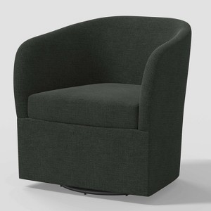 Add extra seating to any room with this Rhea Swivel Chair in Linen from Threshold™. Supported on a wooden frame, this swivel chair is wrapped in soft linen upholstery in a solid hue for easy incorporation into any decor aesthetic. Designed in a classic barrel shape, it features a swivel design that helps it turn in any direction for versatile use.