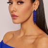 BOHEMIA STYLE EARRINGS Rhinestone Color: Blue, Fringe Chain Earrings Length:2.8in(7.2.cm), Width:0.5inch(1.3cm); Total Weight:5.2g.