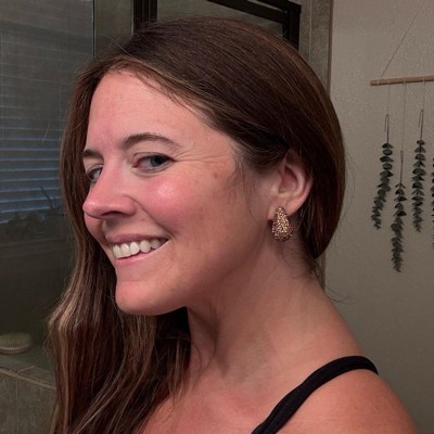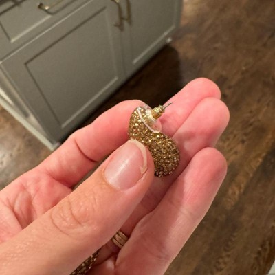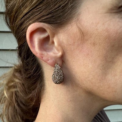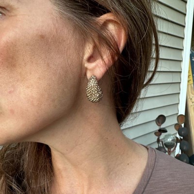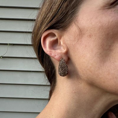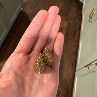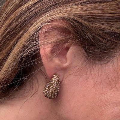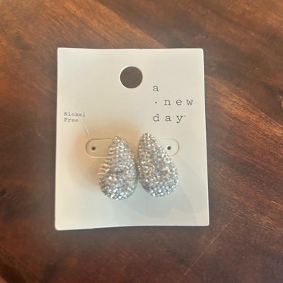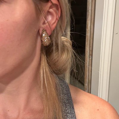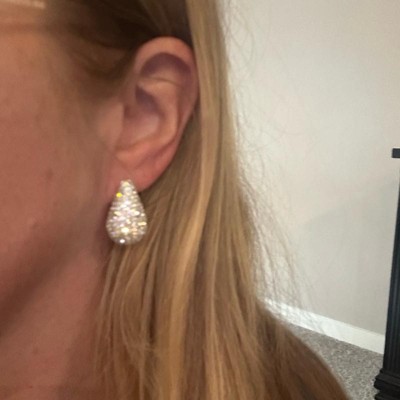 A: The earrings feature a teardrop shape with embedded rhinestones for added glam.