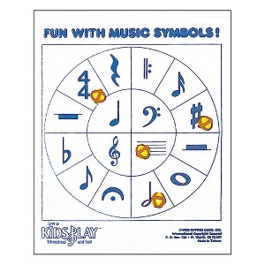Fun With Music Symbols! offers children a game for learning 16 music symbols using a variation of a dart board. The Rhythm Band Kids Play Game presents the musical symbols on a target-style circular-patterned chart. The package includes easy closure-covered balls to use instead of darts. The game board measures 27" x 21".