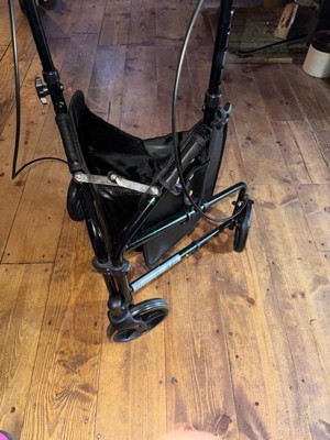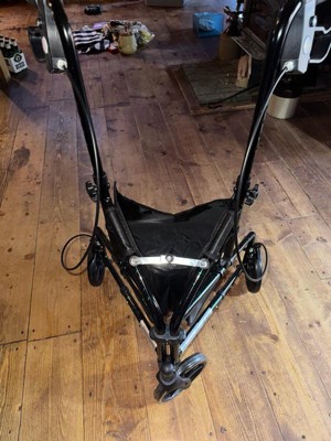 [This review was collected as part of a promotion.] Very lightweight and easy to travel with. It folds down pretty compact and fits easily into my trunk. The design is super sturdy and durable. Wheels roll with ease and setup is a breeze. Provides the extra support needed for my elderly mother. Makes travel so much easier especially in crowded areas. Brakes lock into place, handles are adjustable in height, and even has a small compartment with a cover to stash a few necessities. Excellent design!!