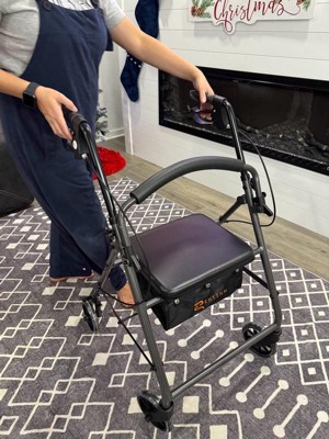 [This review was collected as part of a promotion.] This rollator is lightweight enough to maneuver comfortably but still feels sturdy and stable when walking. The four wheels roll smoothly indoors and outside, and the brakes are dependable and easy to engage. I really appreciate how quickly it folds up- it doesn’t take much effort and stores easily when not in use or when transporting it in a car. The padded seat is comfortable for short breaks, and the tote bag is a convenient bonus for carrying any personal items.
