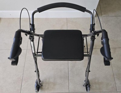 [This review was collected as part of a promotion.] I am very impressed by the craftsman ship on this item and how durable and sturdy it is. This walker folds up pretty easily with a pull strap and you can even use that as a carrier if you are able for easy transport. Using the walker itself is super easy to maneuver in so many which ways and different types of flooring. The seat is comfortable, folds up to a nice little holding basket what’s optional to have on. This walker has a back brace to hold you in or keep you from falling over forward to grab if you’re walking. The breaks work on a dime and make it feel easy to use and stop fast if you need them in a pinch. I feel confident in using this for injury or giving to an elder who needs help walking!