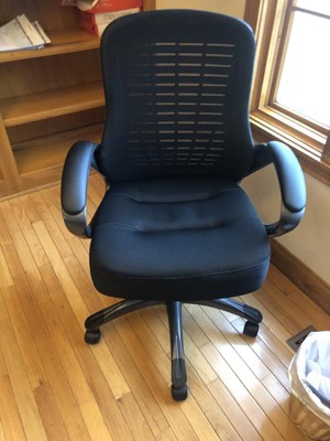 [This review was collected as part of a promotion.] This is truly the best office chair I have ever sat in. It offers great back support and a comfortable well cushioned seat. I can sit in this chair for extended periods while working at my desk, and I do not experience any back discomfort even though I have a long-standing back issue. The chair is very stable due to five caster wheels. It rolls easily on low pile carpet. The arms are well padded. The chair spins very smoothly, which can be just downright fun. For me, this is the perfect office chair.