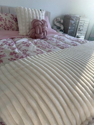 [This review was collected as part of a promotion.] This is a really nice blanket to put over your comforter on cold nights. I have used it several winter nights and feel extra warm. I got the queen size for my bed because I usually don’t see blankets like this in a size that fits your whole bed. It’s like a throw for your bed. It is thin even though it looks thick and fluffy. I think it is very pretty and adds texture to my decor.