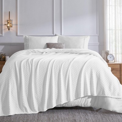 Product Name: Ribbed Plush Bed Blankets Soft Textured Solid Striped Fleece Blanket Decorative & Gift able Warm Blankets - Queen Size 90'' x 90'' (Off White)